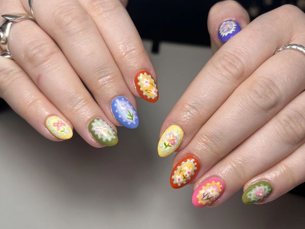 I worked in an amazing modern Nail Salon in the USA where I gained a lot of experience. Since moving back to the UK in 2021, I have been based in Norwich City Centre and I am now in my own Salon on st. Augustine's Street! I love intricate nail art designs and abstract patterns. Everything I do is hand-painted and I haven't said no to a design yet!